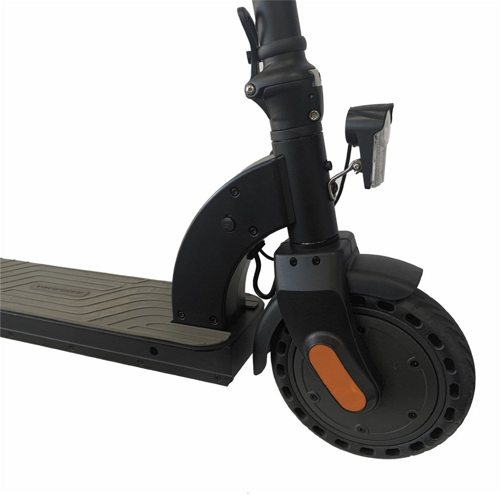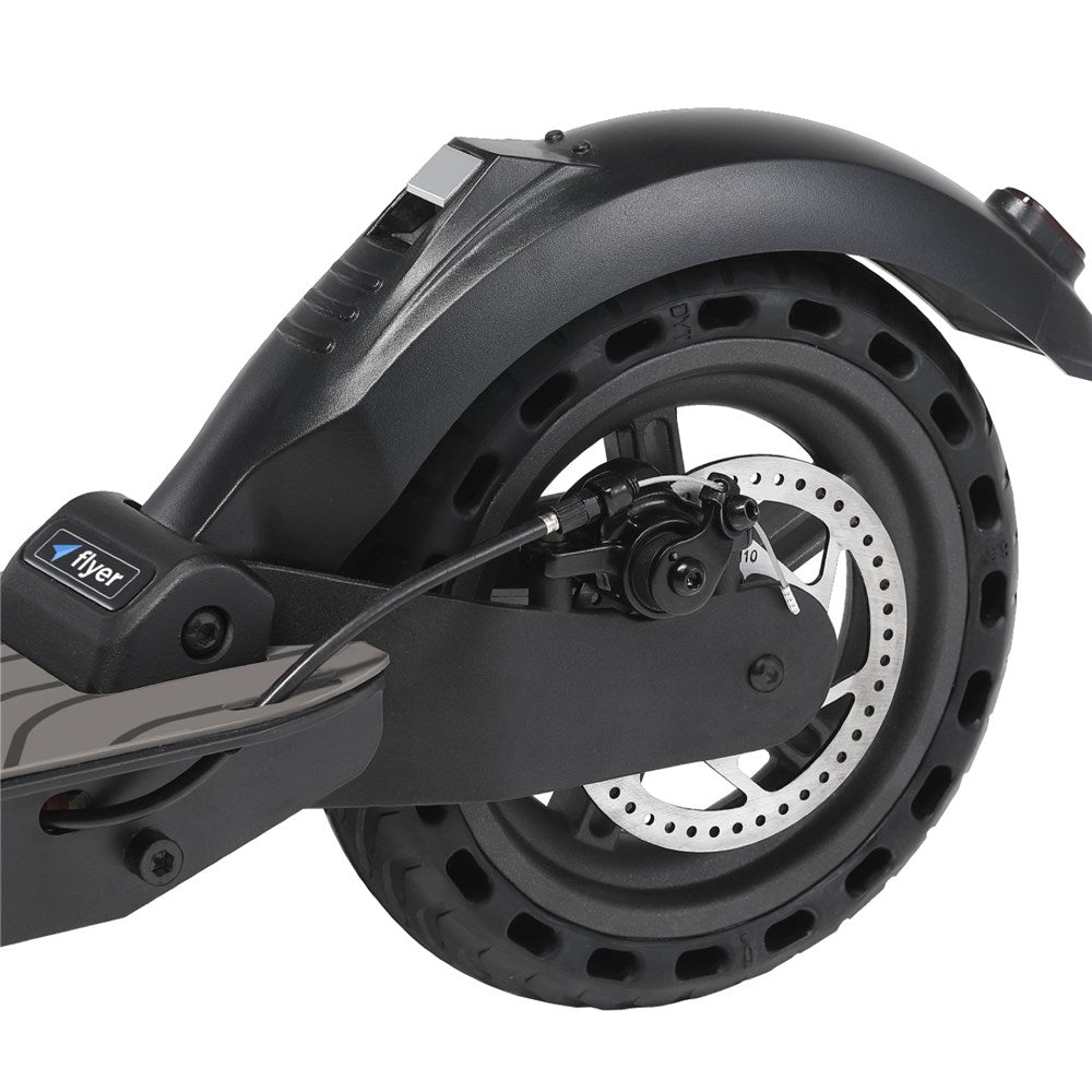 Designed with your comfort and safety in mind, this e-scooter features a sturdy frame, responsive brakes, and reliable suspension, providing a smooth and stable ride on any terrain. The Flyer V2 is equipped with airless, puncture-proof tyres for a smoother ride than solid rubber, while providing the reliability you need when navigating city streets, where glass, nails and other debris can be present. Whether you're commuting to work, running errands, or exploring the city, the Shogun Flyer V2 delivers a thrilling yet secure riding experience every time.