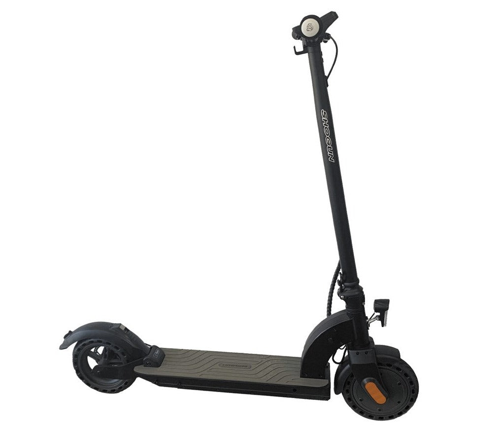 Designed with your comfort and safety in mind, this e-scooter features a sturdy frame, responsive brakes, and reliable suspension, providing a smooth and stable ride on any terrain. The Flyer V2 is equipped with airless, puncture-proof tyres for a smoother ride than solid rubber, while providing the reliability you need when navigating city streets, where glass, nails and other debris can be present. Whether you're commuting to work, running errands, or exploring the city, the Shogun Flyer V2 delivers a thrilling yet secure riding experience every time.